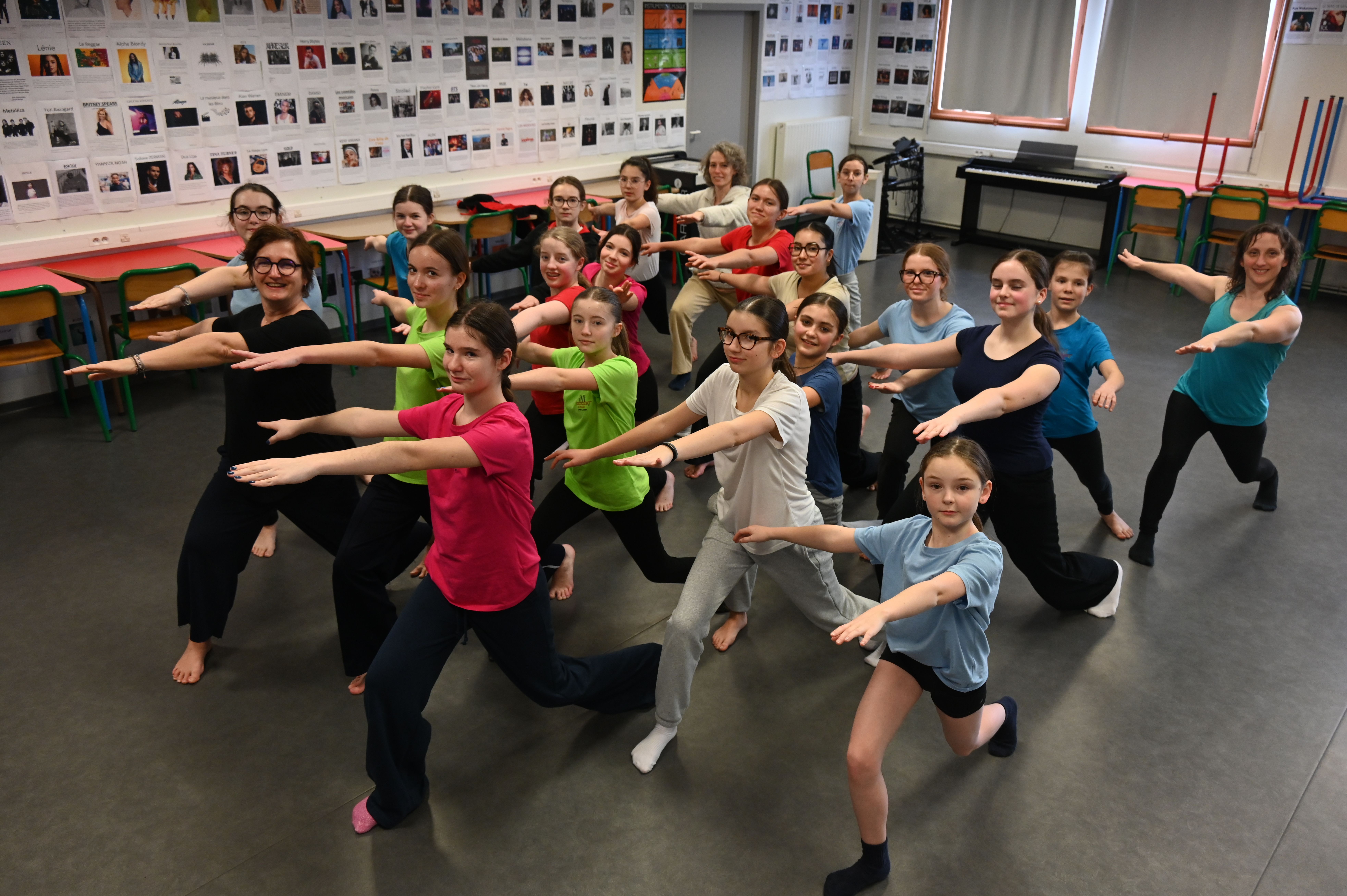 Les danseuses de l’IMV ont vécu un intense et exigeant week-end dédié à la danse avec des techniques diversifiées, notamment, ici l’ouverture au jazz avec Amandine Gay, à droite en arrière-plan.